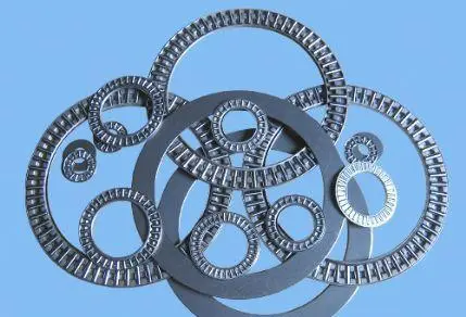 推力滾針和保持架組件是推力滾針軸承的主要元件。滾針由輻射狀排列的袋囊保持和引導(dǎo)。保持架剖面具有特定形狀,是用淬硬鋼帶成型。小尺寸保持架采用工業(yè)塑料制造。